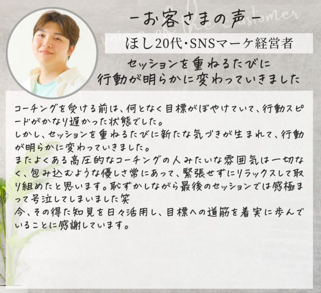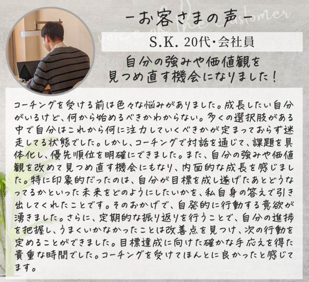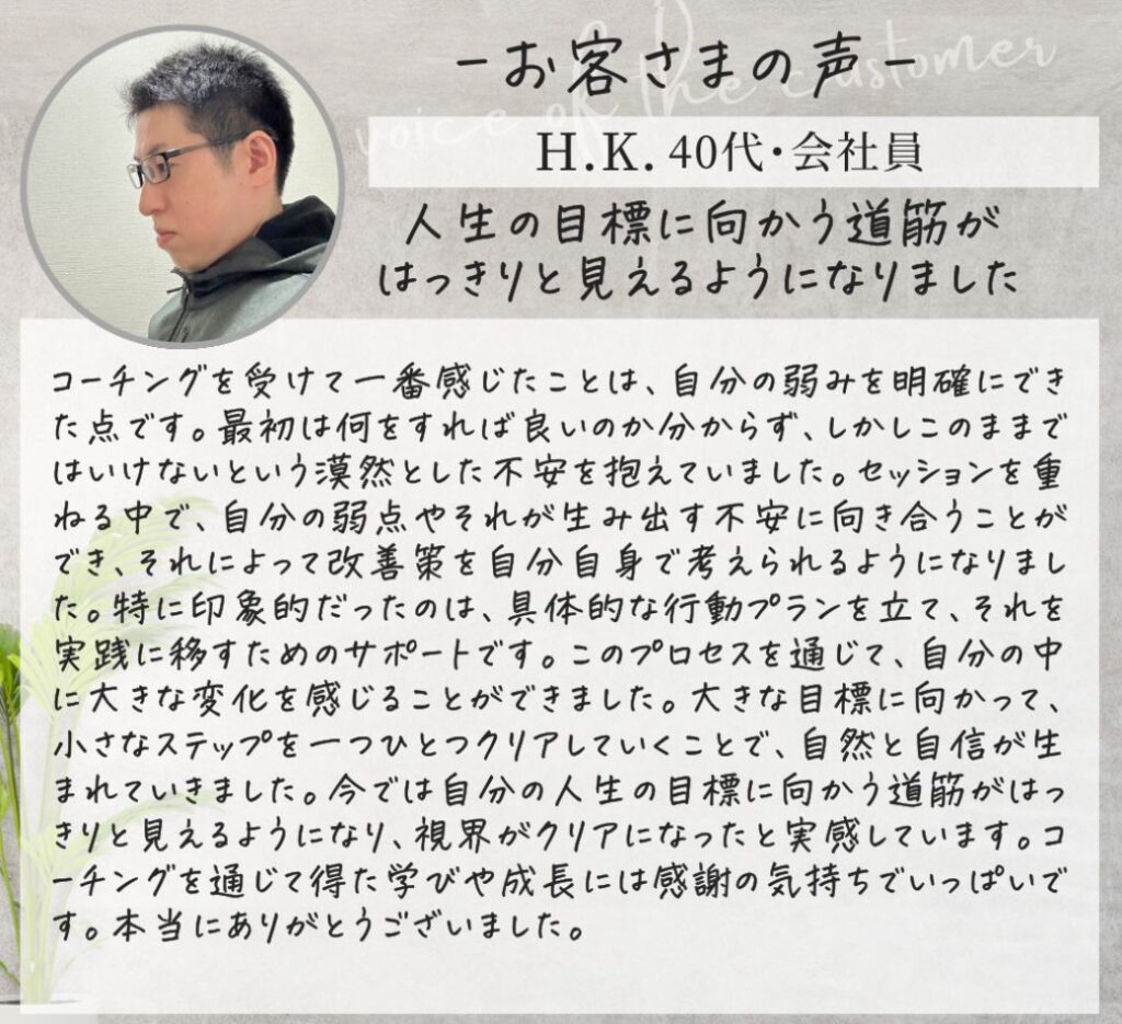これまで成功事例多数! 実際に人生を変えたクライアントの声をもとに、最適なサポートを提供します。